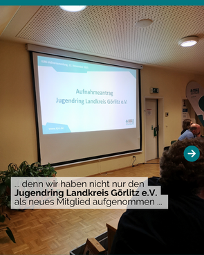 Der erste besonderer Moment des Abends war die Aufnahme eines neuen Mitglieds: Der Jugendring Landkreis Görlitz e.V. wurde offiziell aufgenommen – wir sagen herzlich willkommen in unserem Kreis! Der Aufnahmeantrag wurde einstimmig beschlossen und damit ein wichtiger Schritt in Richtung der Stärkung der Jugendverbandsarbeit im Landkreis Görlitz und in Sachsen gemacht.